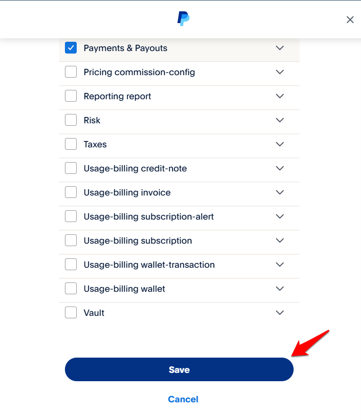 ※見つからない場合は【Payments & Payouts】と【Billing subscription】にチェックを入れてください。