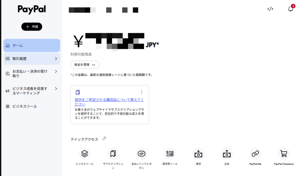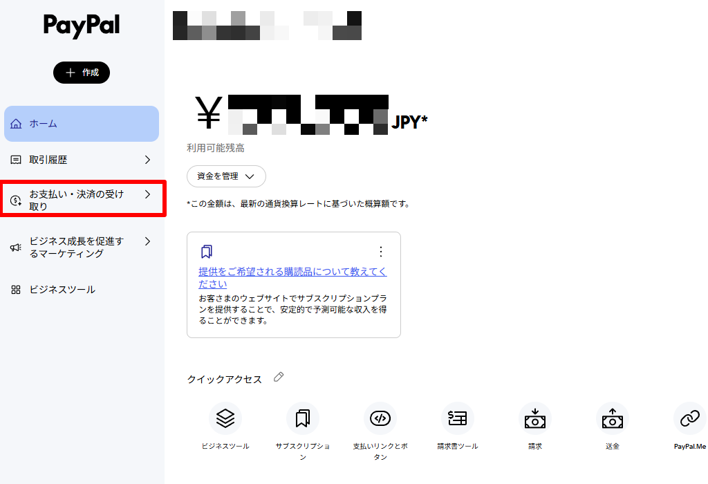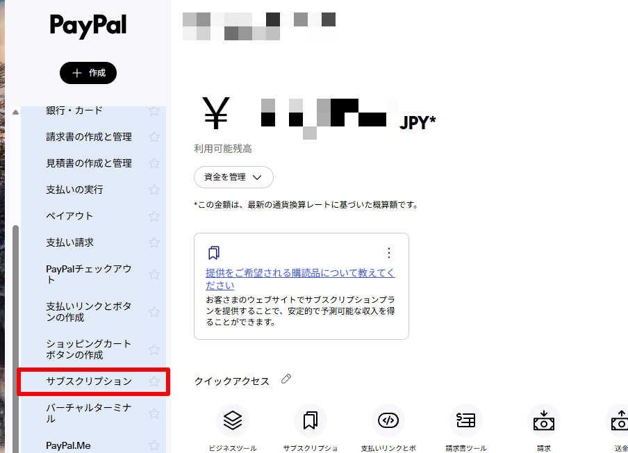 (2)【お支払い・決済の受け取り】>[サブスクリプション]をクリック