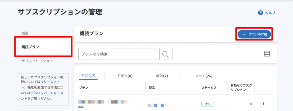 (3)[購読プラン]>[プランの作成]をクリック