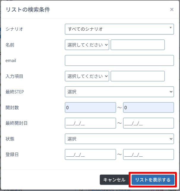 」をクリックステップメール未開封の読者の一覧が表示されます。