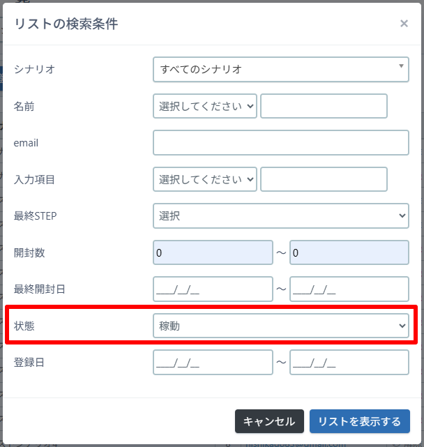 3.リストの表示条件で「開封」のチェックを外す