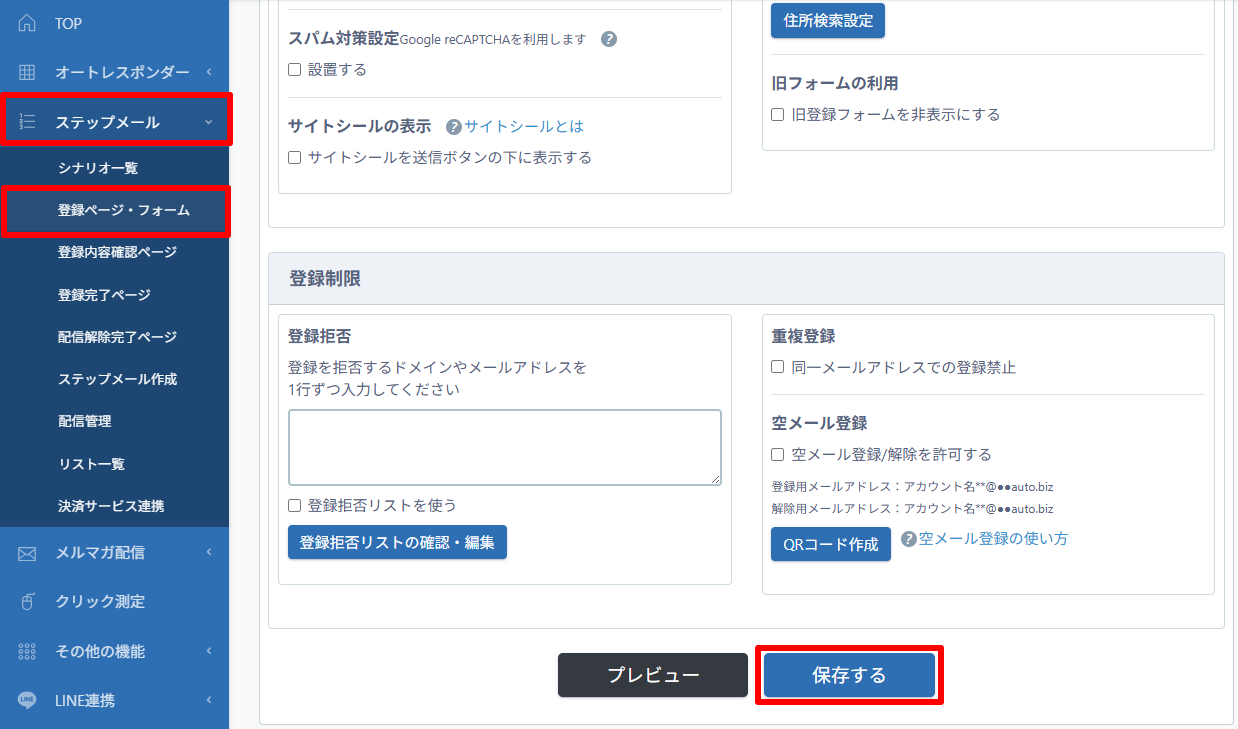 URL中の「ファイル名」は、登録ページ作成の【その他の設定】のファイル名で設定した名前になります。