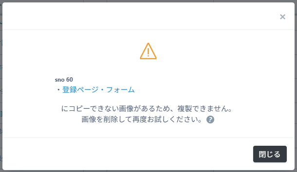 登録ページやメールに「メディア管理」のファイルURL(画像)が入っているとシナリオの複製はできません。