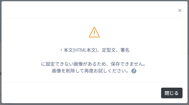 メール本文、定型文、署名欄に「メディア管理」のファイルURL(画像)が入っているとメールが保存できません。
