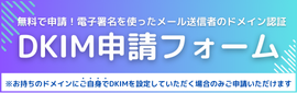 ご自身で、お持ちのドメインにDKIMを設定する場合は以下のフォームから必要事項を入力のうえ、お申し込みください。