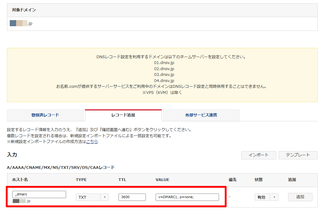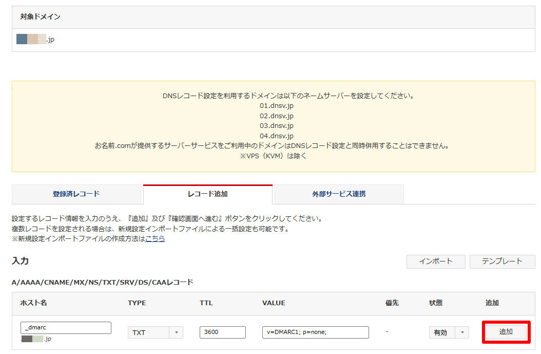 (2)DMARCレコードを追加