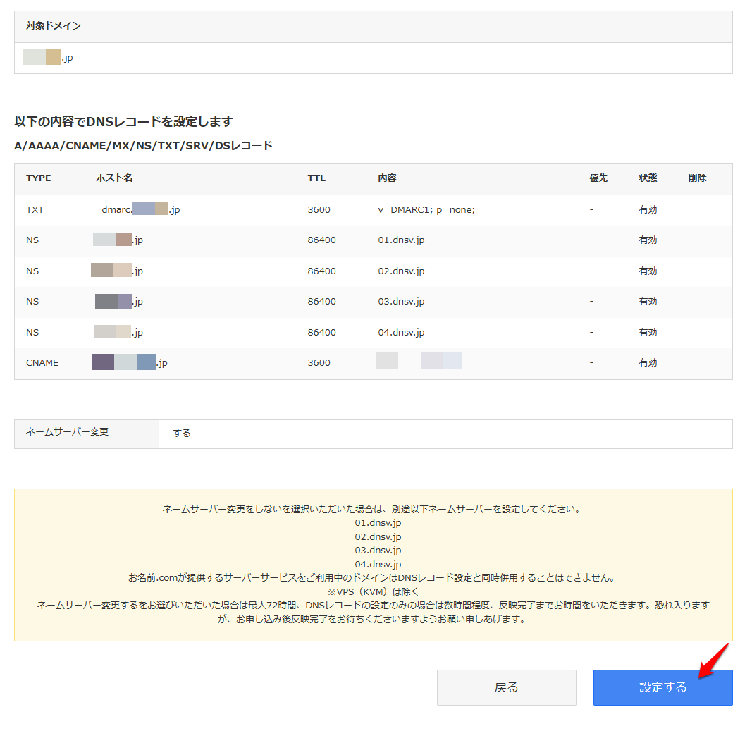 (5)入力内容を確認して『設定する』ボタンをクリック