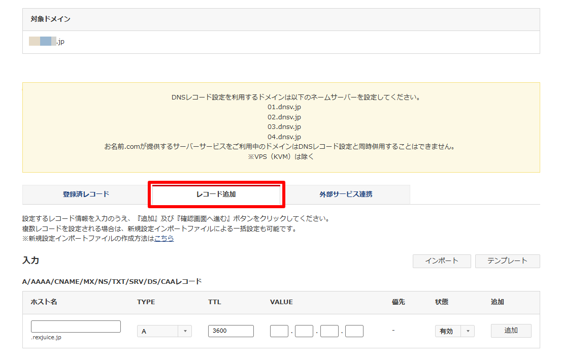 ※設定する上での不具合等については、ドメイン管理会社さまに直接お問い合わせください。