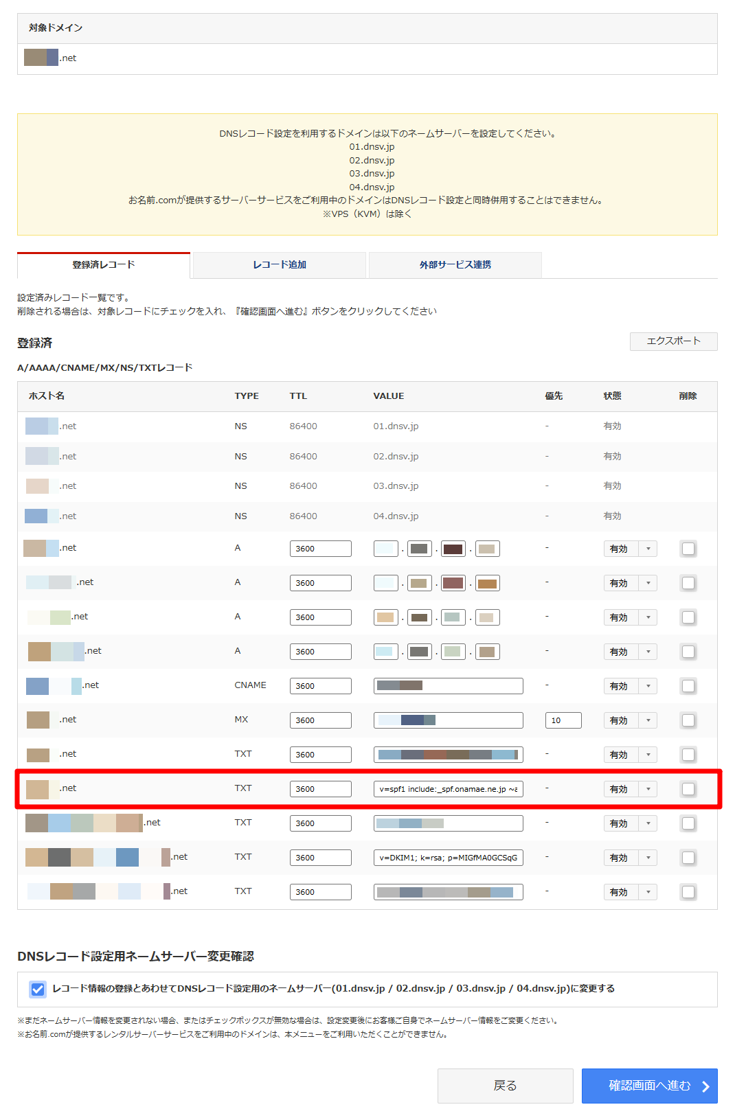 (5)登録済みレコード内に、既にSPFレコードが登録されている場合はオートビズのSPFレコードを追加