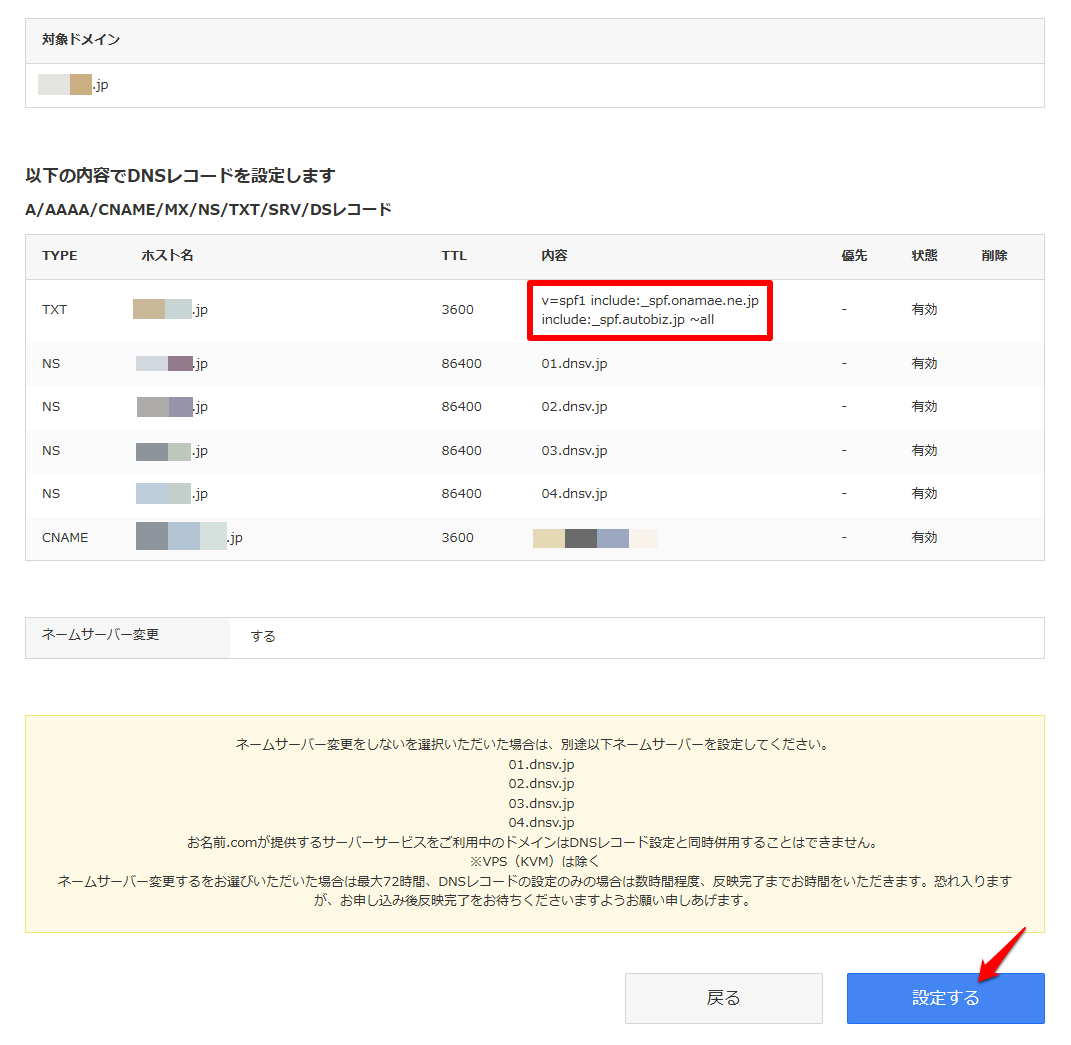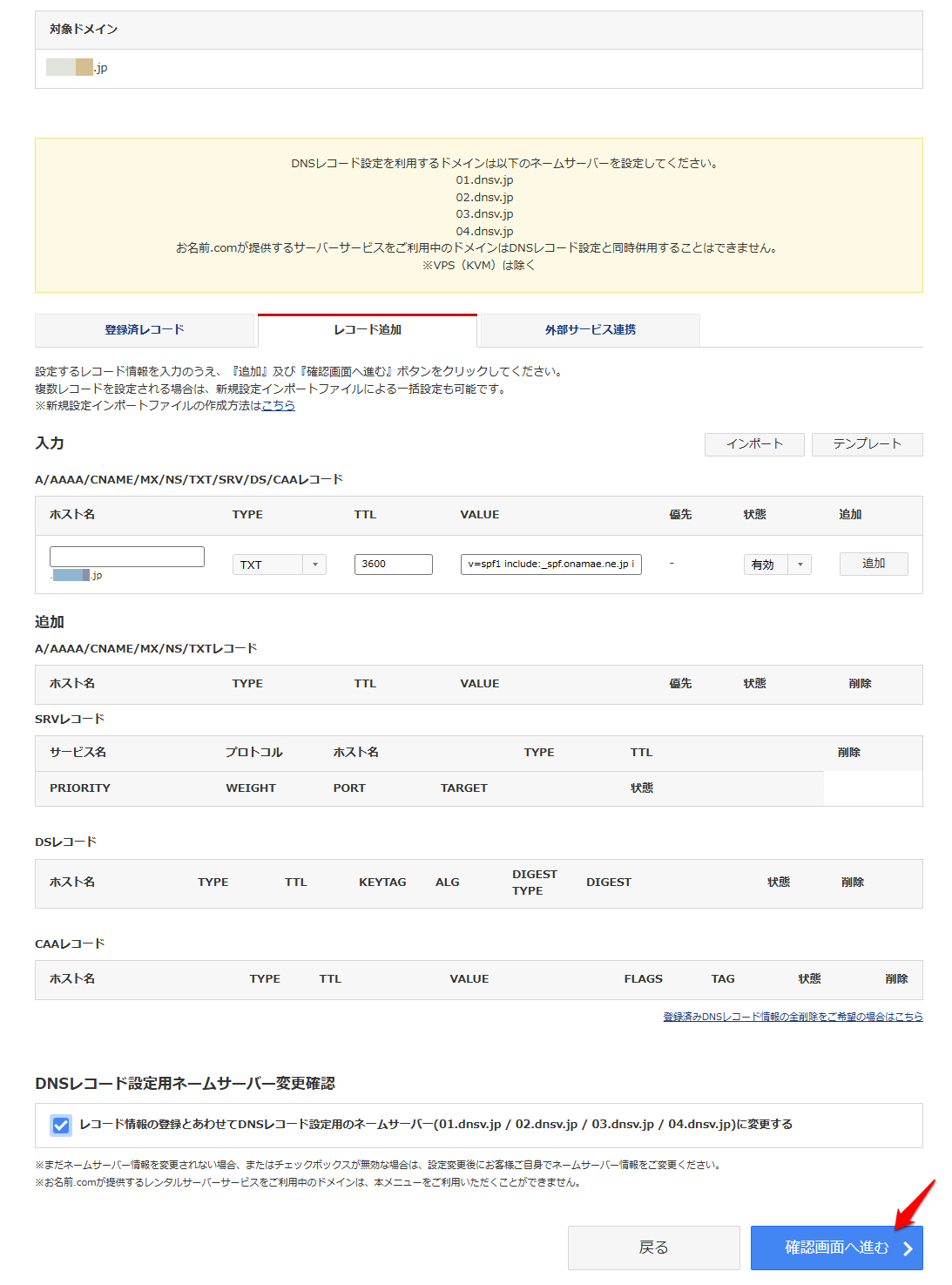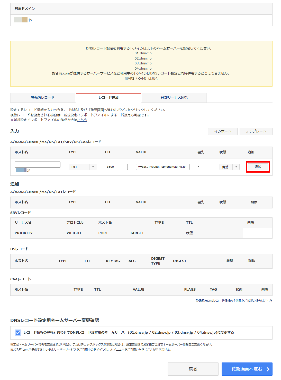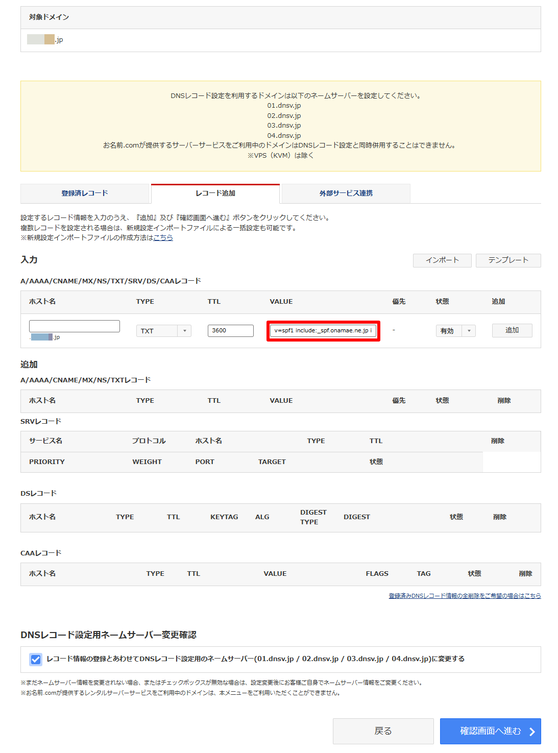 (2)SPFレコードを入力